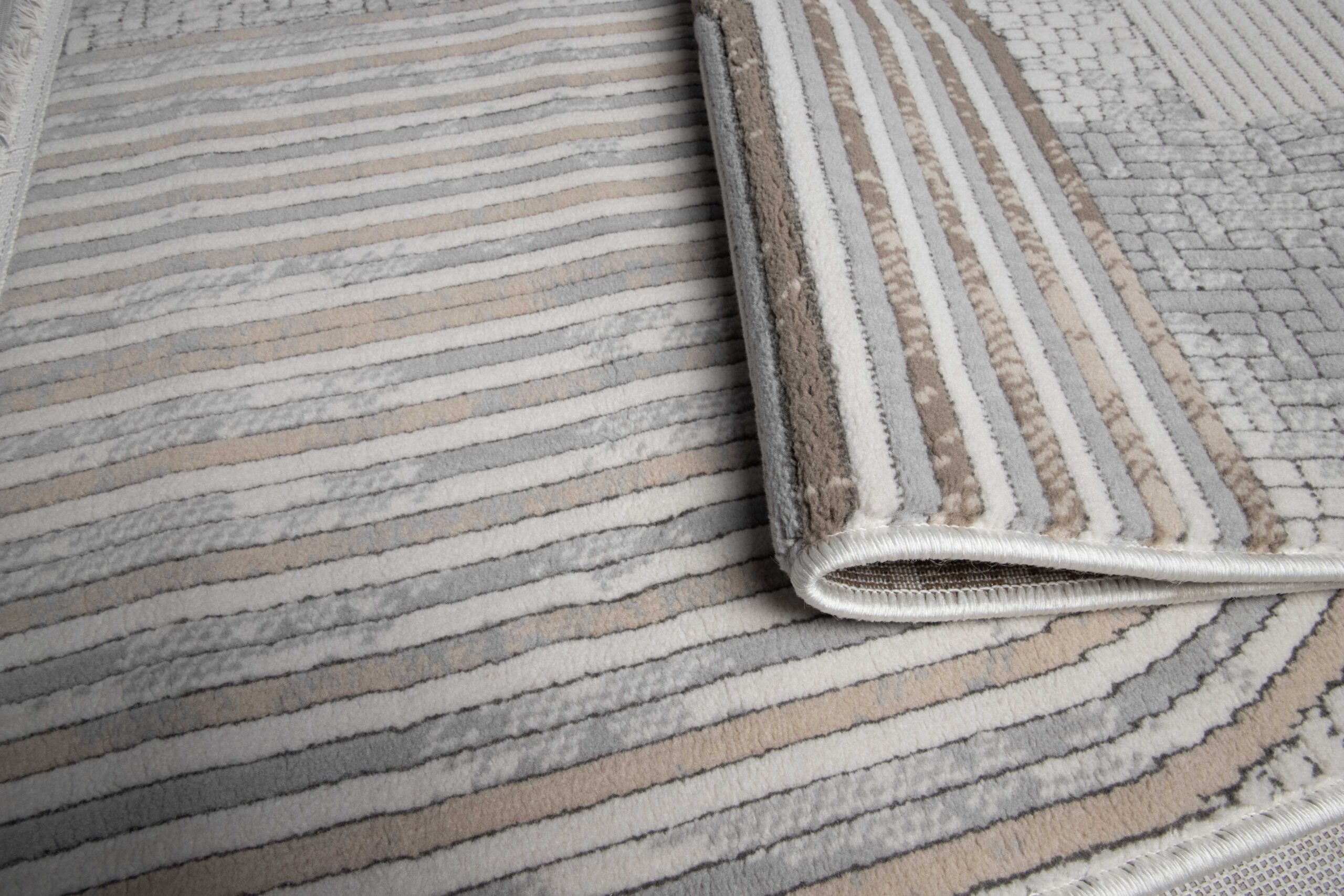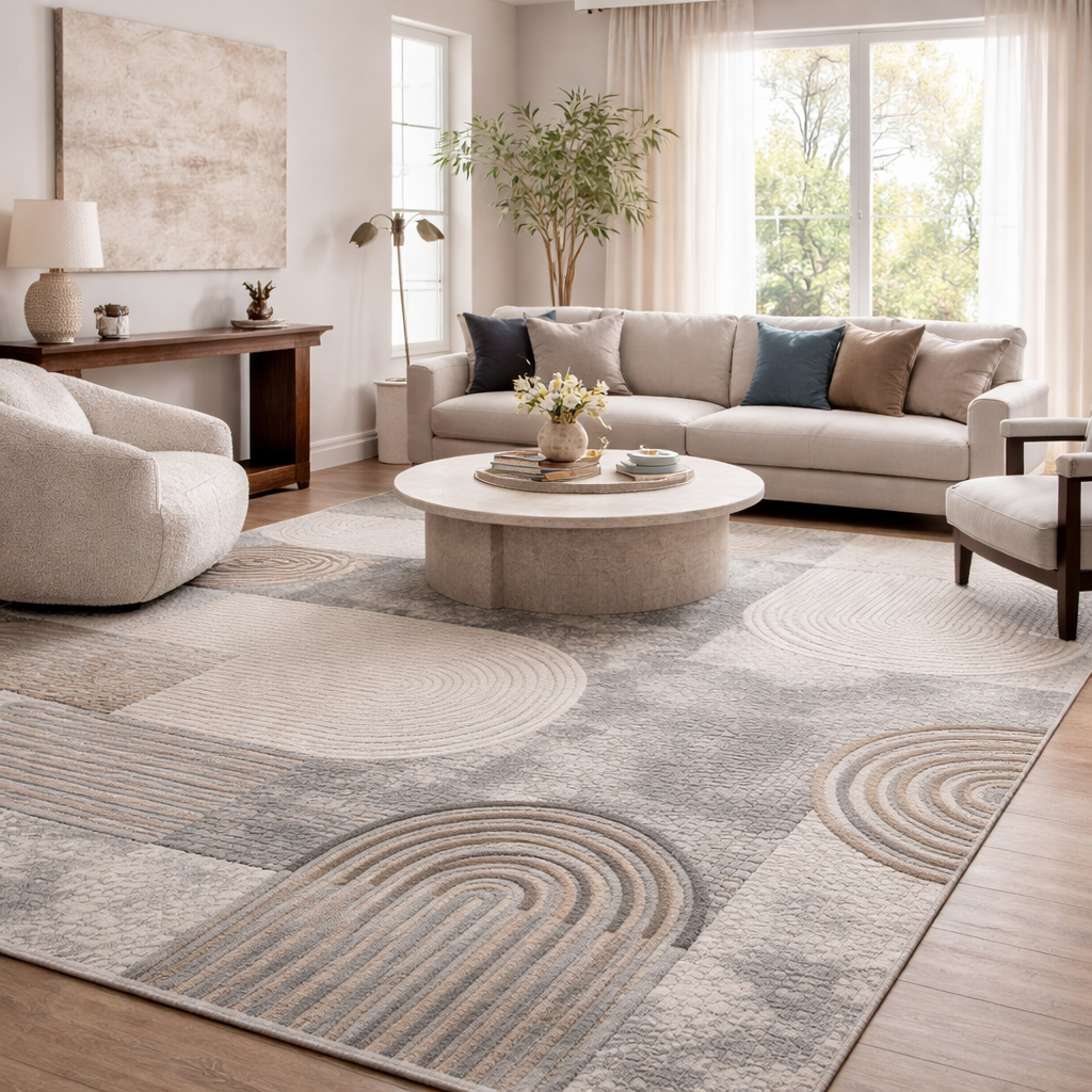 The Merlyn Rug stands out with its soft cream, grey, and taupe tones and contemporary abstract design, bringing a calm yet sophisticated feel to any space. Its layered pattern adds depth and visual interest, while the textured look enhances its modern appeal. Merlyn can beautifully tie together different décor elements in a larger room or create a stylish focal point in a smaller space.